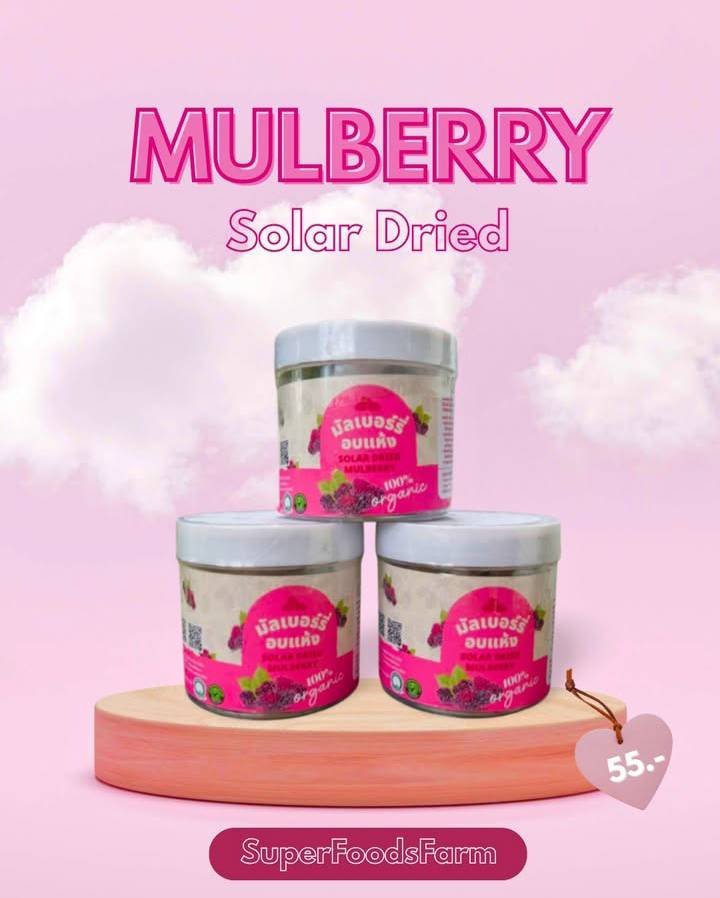 ลูกหม่อนอบแห้ง 1กระปุก 100กรัม ลูกหม่อนเป็นแหล่งโปรตีนที่สำคัญ โปรตีนเป็นองค์ประกอบสำคัญของเซลล์และกล้ามเนื้อ มีบทบาทในการสร้างและซ่อมแซมเนื้อเยื่อ และช่วยสร้างภูมิคุ้มกันในร่างกาย ลูกหม่อนเป็นแหล่งเส้นใยที่สำคัญส่งเสริมการย่อยอาหาร มีวิตามินและแร่ธาตุหลายชนิด เช่นวิตามินซี วิตามินเอ แคลเซียมและโปรแทสเซียม ที่เป็นสารสำคัญในการรักษาสุขภาพทั่วไปของร่างกาย มรสารต่อต้านอนุมูลอิสระ และมีสารไอโนซิตอลช่วยควบคุมระดับน้ำตาลในเลือด